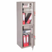 Нижняя секция содержит одну полку; внутри верхней секции расположена полка и трейзер – кассовое отделение с собственным замком почтового типа. Полки при необходимости снимаются и передвигаются по высоте. Толщина металла полки 0.6 мм.