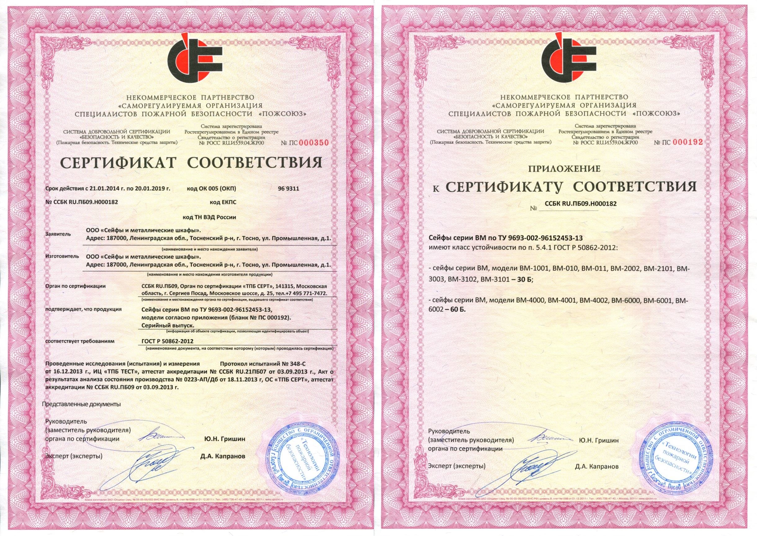 Сейф протестирован по стандартам ГОСТ Р 50862-2012 и ГОСТ Р 51113-97 и причислен к 4 классу взломостойкости и классу 60Б по устойчивости к огню (это означает сохранность бумаг при внешней температуре 1000 ºС в течение 60 минут). В сейфах данного класса предлагается хранить следующие суммы: до 16 млн. рублей – для индивидуальных владельцев; до 8 млн. рублей – для юридических лиц.